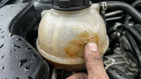 - Síntoma: Depósito de reserva con líquido color café oscuro o textura lodosa. = Causa: Oxidación severa del bloque de hierro fundido debido a un exceso de agua sin inhibidores de corrosión. El fluido económico ha perdido toda su (inexistente) capacidad protectora y el metal se está desintegrando.