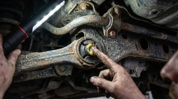 Existe la creencia generalizada de que cualquier ruido en el tren delantero es síntoma de una suspensión destruida. Sin embargo, el famoso ‘clunk’ de Mazda rara vez proviene de los amortiguadores en sí. El verdadero culpable suele ser una pieza diminuta y económica: los bujes de la barra estabilizadora delantera. Con el tiempo, el caucho de estos bujes se reseca y genera fricción, provocando ese espantoso crujido que te hace pensar que el carro se va a desarmar.