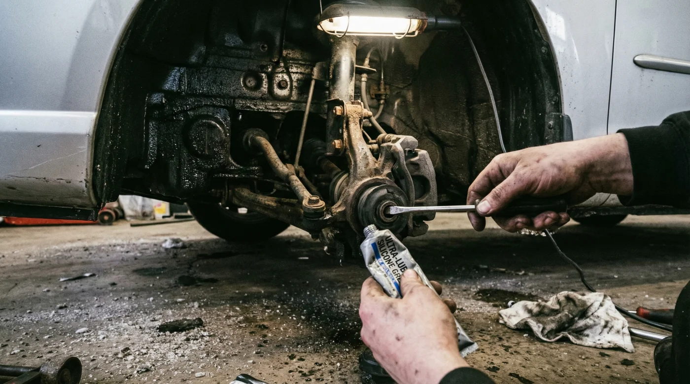 El secreto que los talleres no quieren que sepas es un simple mantenimiento preventivo. En lugar de cambiar piezas costosas, todo lo que necesitas es lubricar los bujes estabilizadores. Para esto, debes usar exclusivamente grasa de silicona o grasa dieléctrica. Un tarro pequeño de este producto se consigue en cualquier ferretería o tienda de repuestos en Colombia por menos de 10.000 pesos.