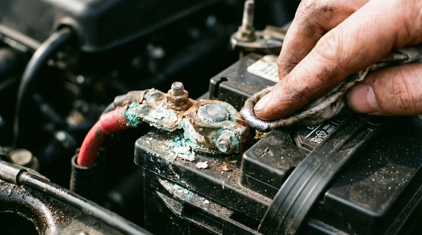 Para el viajero constante de fin de semana: Si tu rutina implica descender constantemente desde el frío bogotano hacia climas cálidos y húmedos como Melgar o Girardot, la humedad ambiental pegajosa se adhiere sin piedad a los metales expuestos de tu motor. El terminal de tu batería empieza a sudar una pátina verdosa o blanca que actúa como un muro de contención, bloqueando la corriente de tajo.