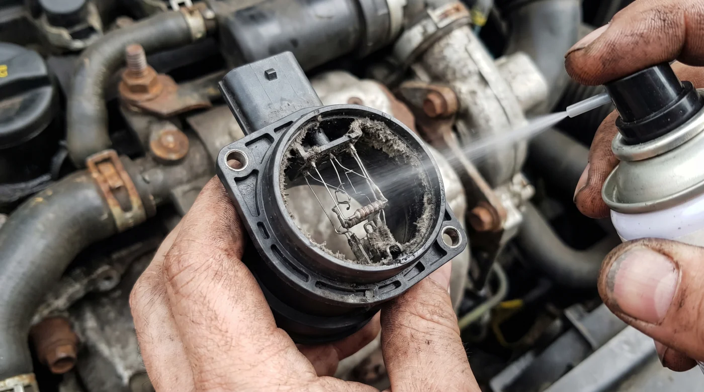 El sensor de flujo de masa de aire (MAF) utiliza un delicado hilo de platino calentado que se enfría con el aire entrante para calcular la densidad del oxígeno. Cuando capas microscópicas de carbón y vapor de aceite se hornean sobre este cable, actúan como un aislante, engañando a la computadora para que inyecte menos combustible y asfixiando por completo el ciclo de combustión.