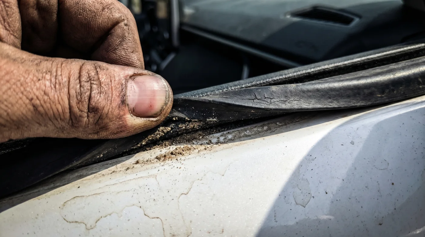 - Retiro del burlete: Tira suavemente del caucho hacia afuera con las manos libres de grasa. Verás una pestaña metálica pintada expuesta. La humedad suele agruparse aquí en forma de gotas atrapadas.