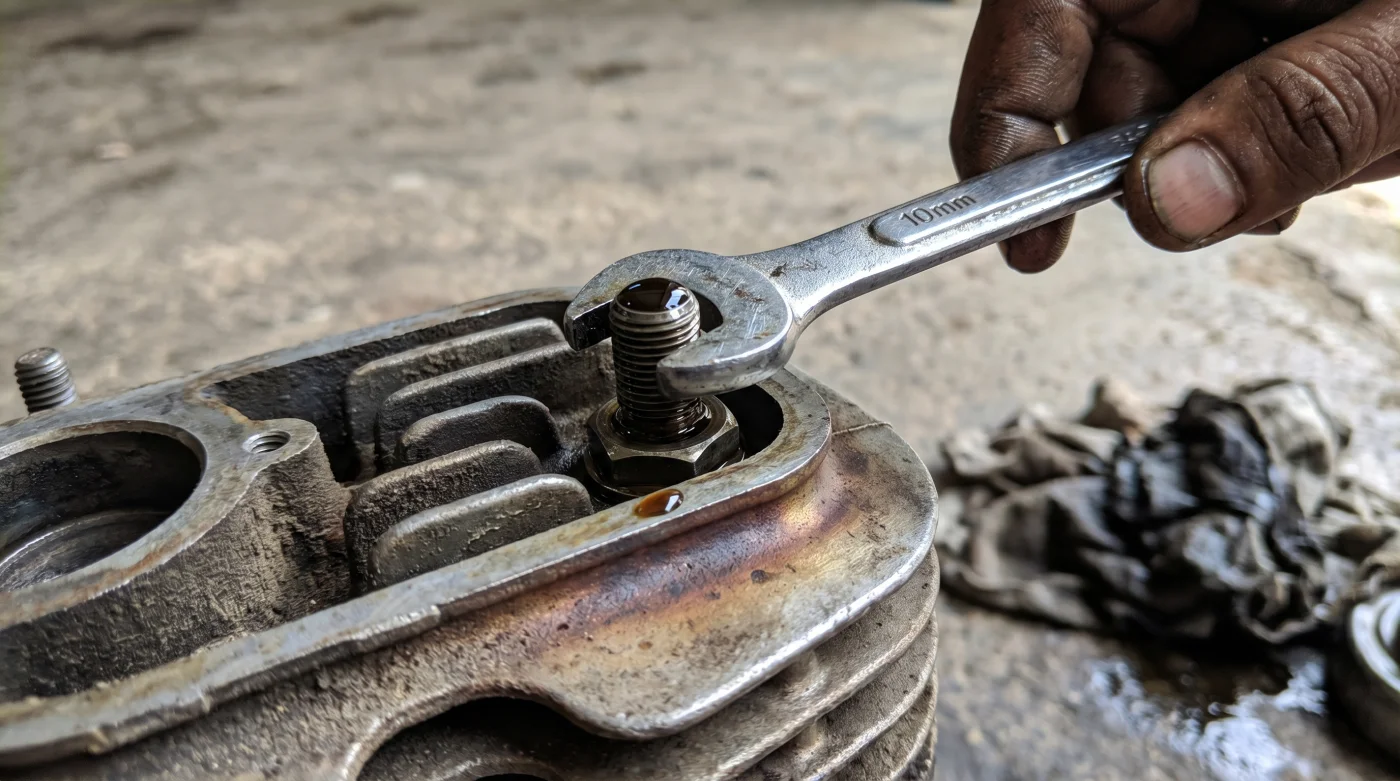 Roberto El Capi Sánchez, veterano ajustador de monocilíndricos en el tradicional barrio 7 de Agosto, aplica su regla de acero: el tacto manual supera cualquier orden de servicio impresa. Aquí está su método directo para recuperar la reacción física del acelerador sin usar escáneres. Paso 1 y 2: Bloquea el bloque motor en frío absoluto. Toca las aletas exteriores del cilindro; deben igualar la temperatura ambiente. Retira las tapas de inspección de la parte superior. Busca la marca T exacta utilizando un dado de 17mm para girar el cigüeñal en estricto sentido antihorario hasta encontrar el punto muerto superior del ciclo de compresión. Paso 3 y 4: Mide la restricción actual y aplica la corrección táctica. Desliza una galga de 0.18mm bajo el tornillo del balancín de escape. Si la lámina se niega a entrar, el ahogo mecánico es severo. Afloja la contratuerca externa usando la llave 10. Con unas pinzas finas, gira el tornillo central un cuarto de vuelta exacto hacia la izquierda. Paso 5 y 6: Verifica la fricción milimétrica y sella el compartimento. Pasa la lámina metálica nuevamente bajo el punto de contacto. Debe sentirse un roce firme, similar a extraer una hoja de papel atrapada en medio de un directorio cerrado. Mantén el ajustador inamovible mientras aprietas la contratuerca a 12 Nm. Un solo milímetro de rotación indeseada arruina todo el proceso táctil.