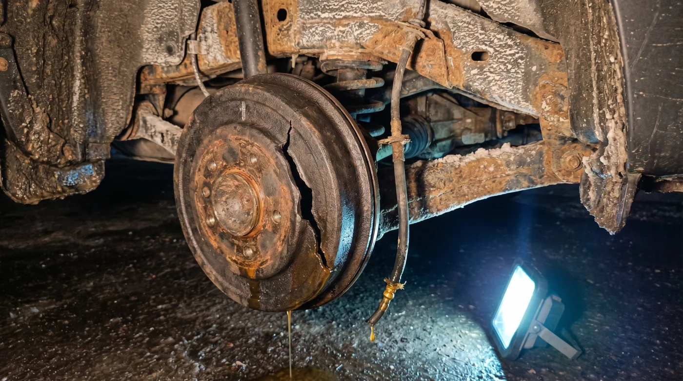 2. Inspección visual del tambor: Carlos Rueda, perito técnico forense, exige buscar un goteo ámbar viscoso e inusual en el borde inferior de la campana trasera derecha. Estaciona sobre asfalto completamente seco, agáchate y pasa una luz blanca por el reverso de la rueda. Si hay humedad pegajosa, el cilindro maestro cedió.
