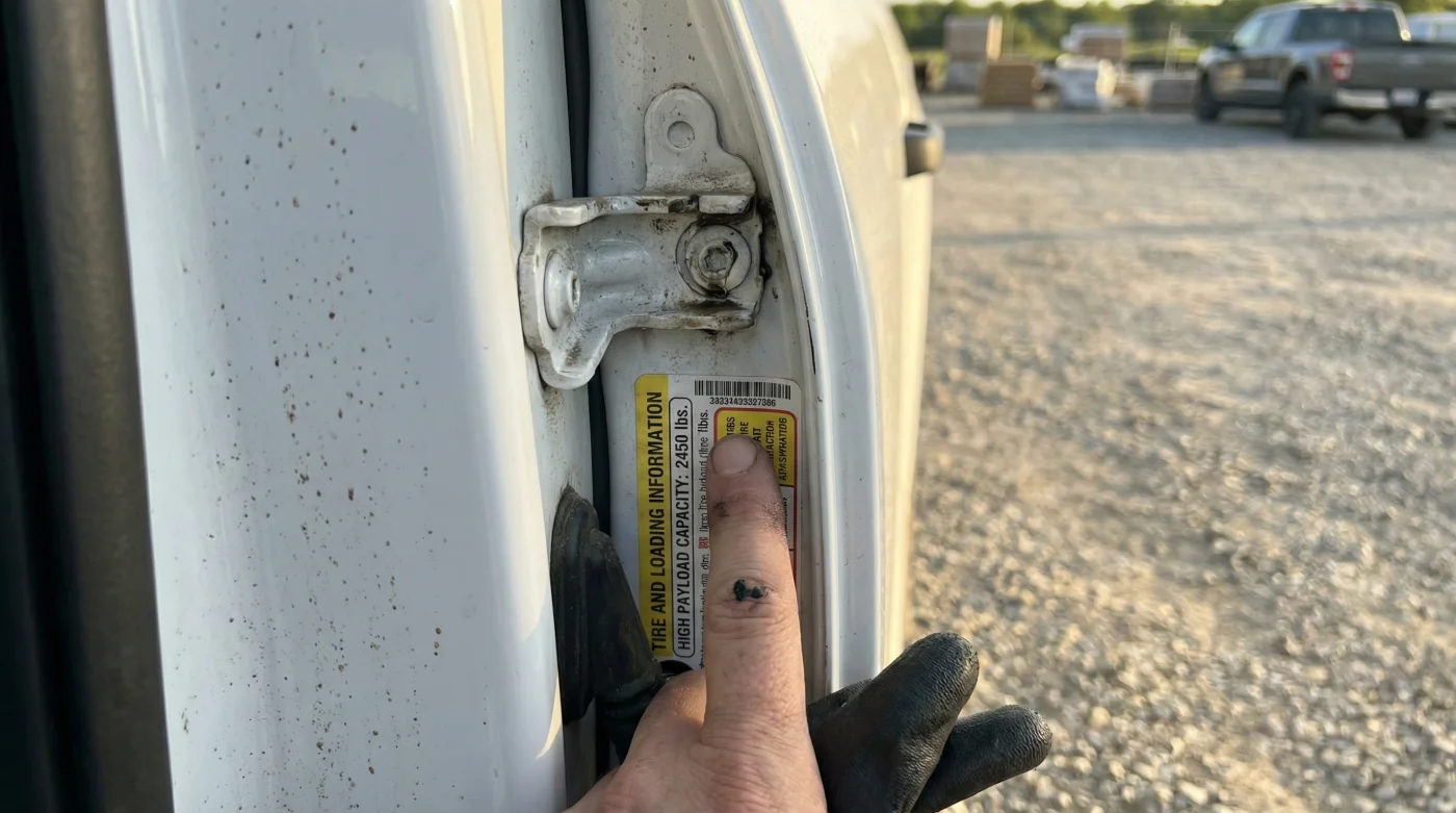 Abre la puerta del conductor y busca una etiqueta amarilla en el pilar B. Dirá claramente: ‘El peso combinado de los ocupantes y la carga nunca debe exceder de X kilos’. Confía solo en ese número.