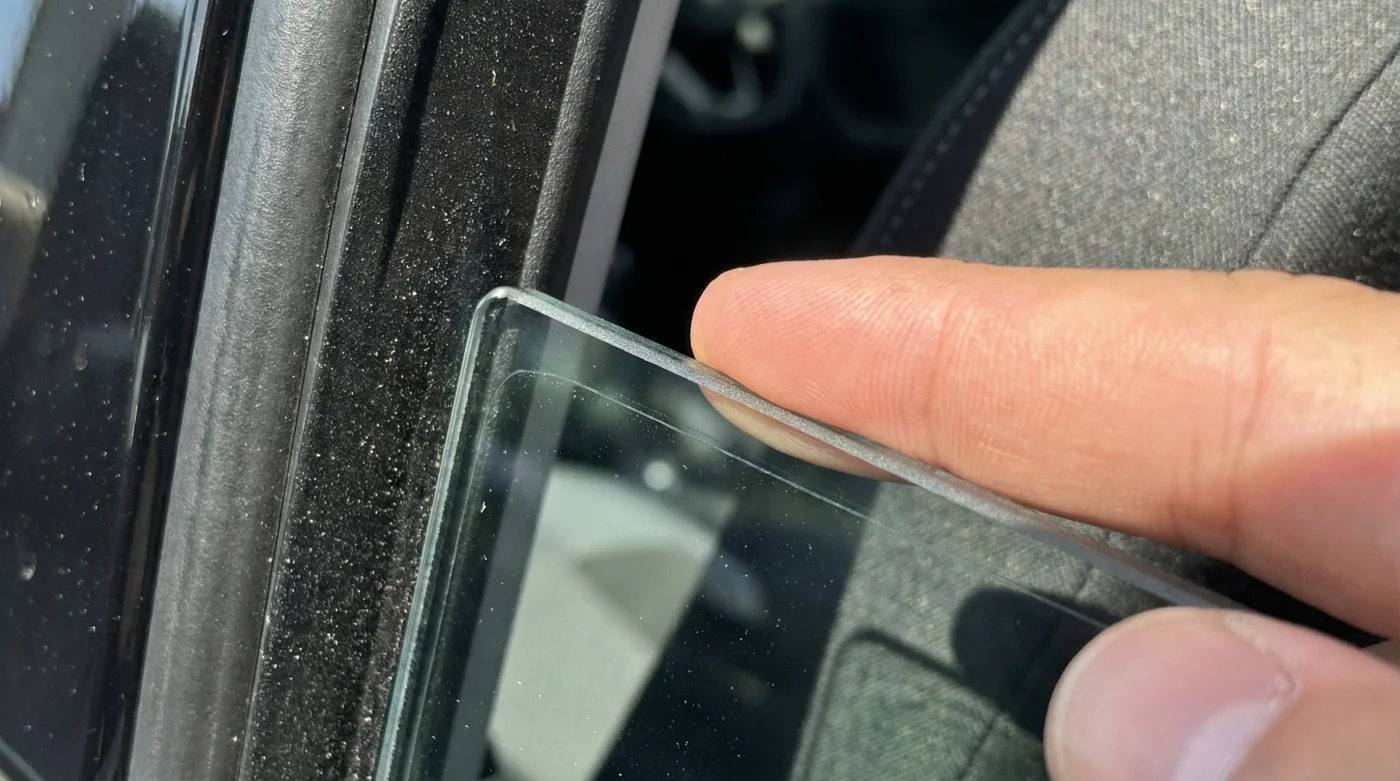 | El logo y código del fabricante en el margen del vidrio. | Cristales sin el distintivo de laminado acústico en versiones usadas. |