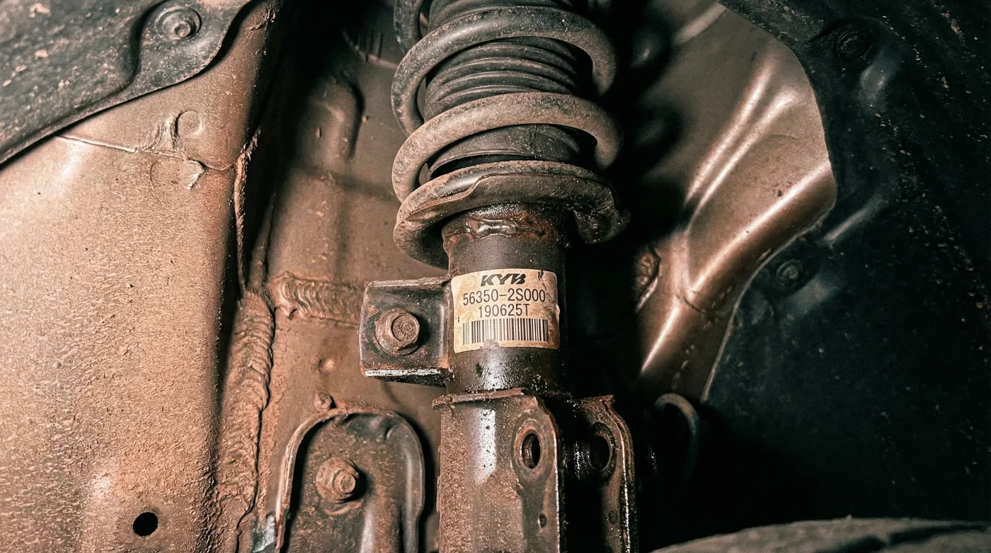 - Inspección visual baja: Gira el volante a tope hacia un costado, agáchate cerca de la llanta y linterna en mano mira el espiral del amortiguador. Verás sin lugar a dudas que el grosor del acero y el número de vueltas es un calco exacto.