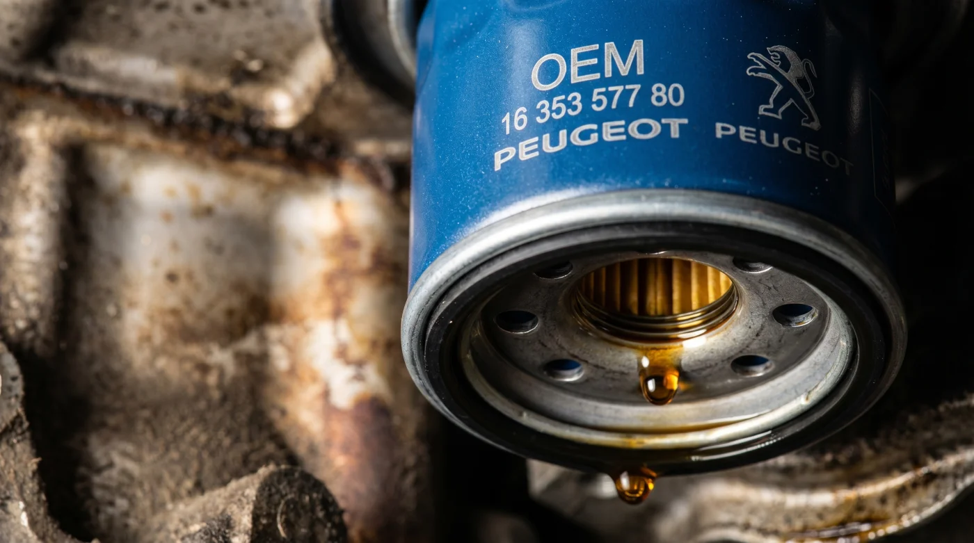 El olor a aceite sintético quemado a 130 grados Celsius no se olvida fácilmente. Es denso, casi dulce, y generalmente va seguido del chasquido metálico de un bloque de motor de un Peugeot 2008 enfriándose a la fuerza en el arcén de la vía. En los talleres de Bogotá, este escenario de recalentamiento se repite con una frecuencia alarmante. El culpable rara vez es un defecto masivo de ingeniería, sino un cilindro de papel corrugado que cuesta apenas 35,000 pesos en cualquier repuestera de barrio. Para el sensible motor 1.2 PureTech turbo, instalar cualquier cosa que no sea el filtro original OEM PSA 1109.AL es una condena a corto plazo. La presión interna colapsa casi de inmediato, la lubricación milimétrica del turbocompresor se detiene y la fricción destruye la culata antes de que alcances a pedir una grúa.