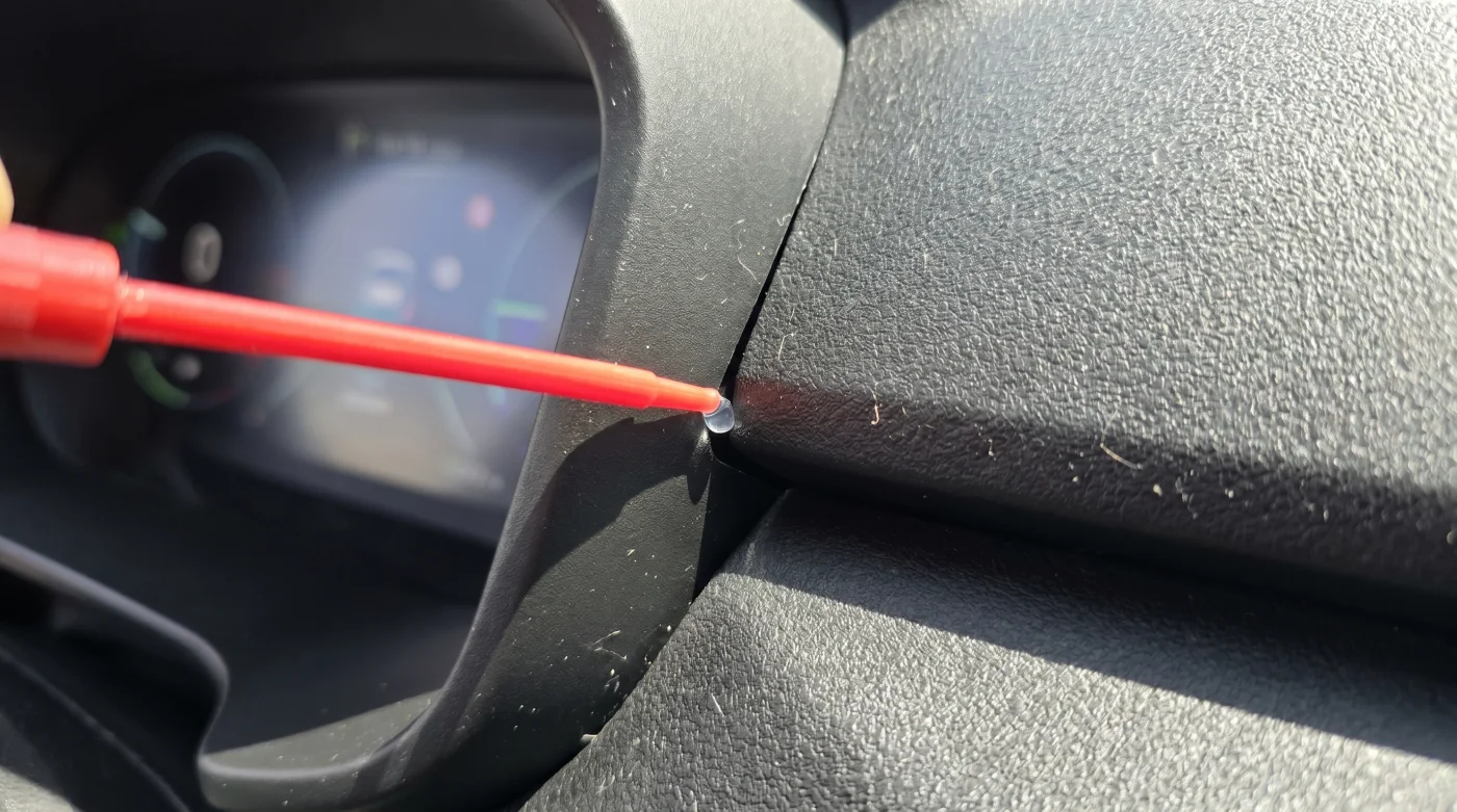 1. Ubica el punto de estrés: Abre la puerta del copiloto. Observa el panel lateral que queda oculto cuando la puerta está cerrada, justo detrás de la rejilla de ventilación extrema.
