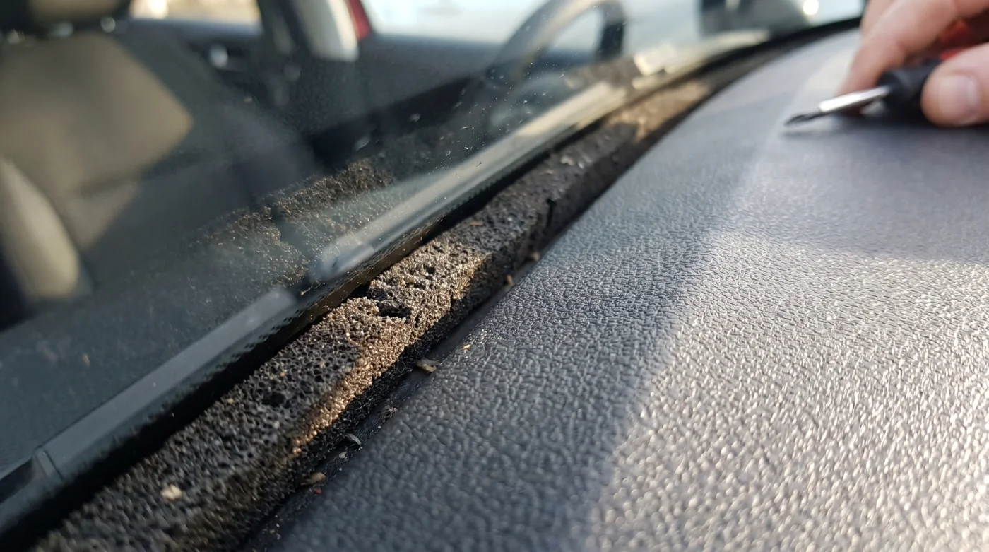 Localiza la junta de dilatación frontal del parabrisas. Es esa fina brecha de apenas 3 milímetros donde el plástico rugoso de la consola superior se encuentra con el cristal. Corta tiras de espuma de no más de 15 centímetros de largo. Tratar de insertar una tira continua de un metro de lado a lado resultará en dobleces frágiles y material amontonado que el sol terminará expulsando.