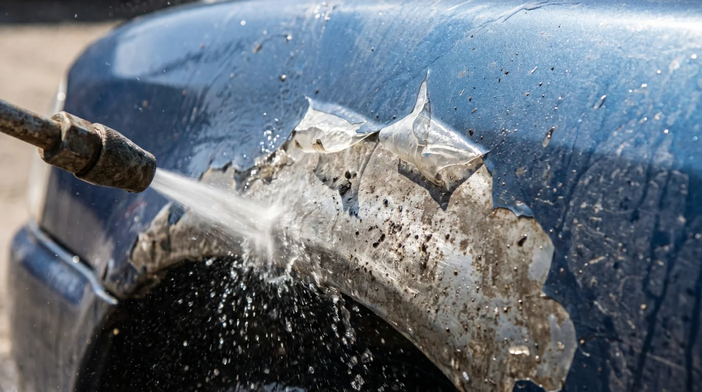Aquí es donde cambia todo. Creemos que el agua no puede rayar, pero cuando sale disparada por una boquilla milimétrica, actúa como un millón de agujas golpeando la misma superficie. Las microfracturas comienzan en los bordes de los faros, alrededor de las manijas y en la curva del parachoques. Al principio son invisibles al ojo humano. Luego, un día bajo el sol del mediodía, notas un velo opaco y blanquecino que ninguna cera logra disimular.