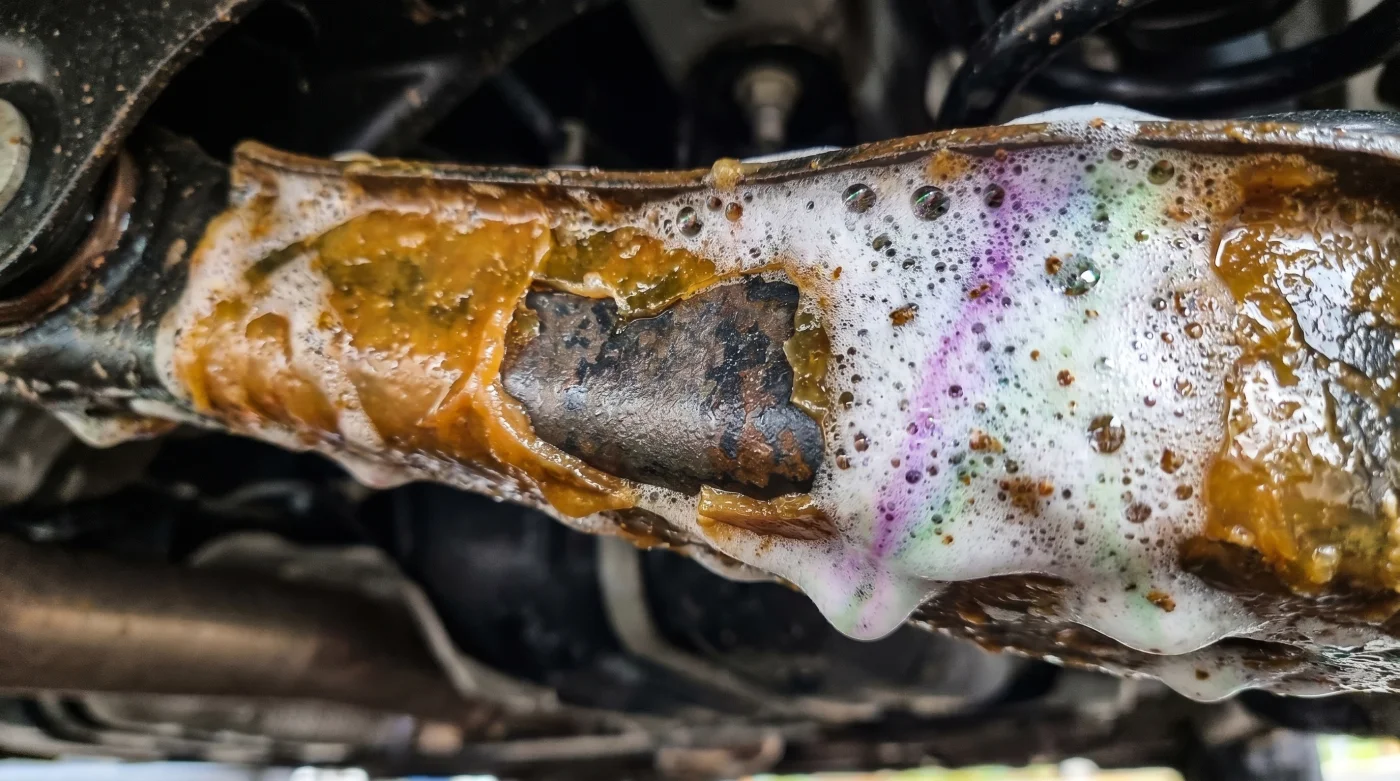 Ese coctel de químicos baratos, sumado al impacto brutal de los 2.000 PSI de la hidrolavadora a escasos centímetros del metal, arranca la cera anticorrosiva en cuestión de un par de sesiones. Esta exposición forzada deja el acero crudo desnudo, completamente vulnerable a los charcos estancados de la ciudad y a los drásticos descensos de temperatura en la madrugada.