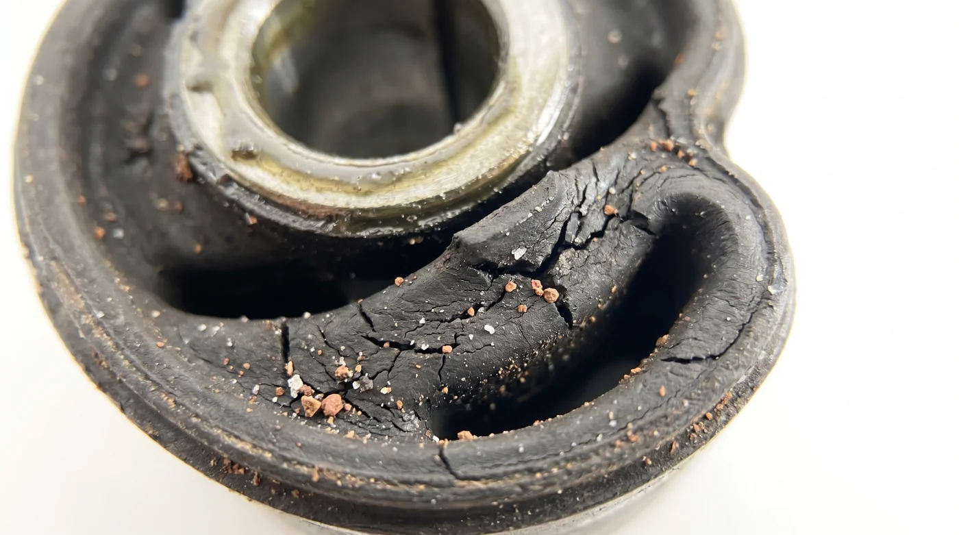 Aquí ocurre el cambio de perspectiva que te salvará de un mal negocio: el desgaste asimétrico de esta pequeña goma no es un simple repuesto viejo que debas cambiar por mantenimiento rutinario. Es la prueba irrefutable de una sobrecarga severa no reportada. Rompe la confianza total en la historia oficial que te cuentan y te entrega el poder de ver la realidad cruda del vehículo.