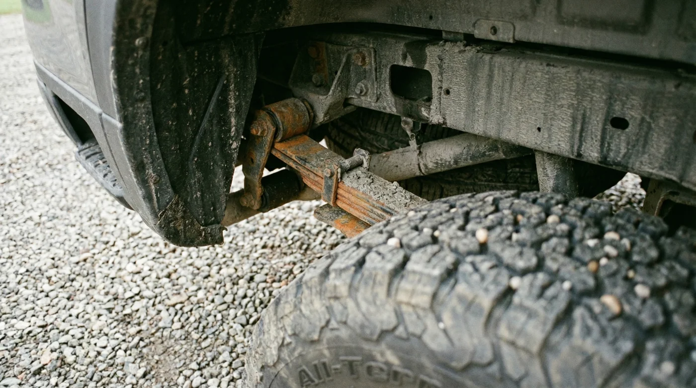Cuando dejas caer un bloque de motor o un pallet de cemento en la parte trasera, las hojas de acero de las ballestas se aplanan gradualmente, creando una resistencia progresiva. La tensión del metal se ajusta al peso de forma natural. No hay fluidos complejos intentando compensar la gravedad; es pura física mecánica actuando a tu favor para mantener el eje trasero anclado y firme contra el asfalto o el barro.