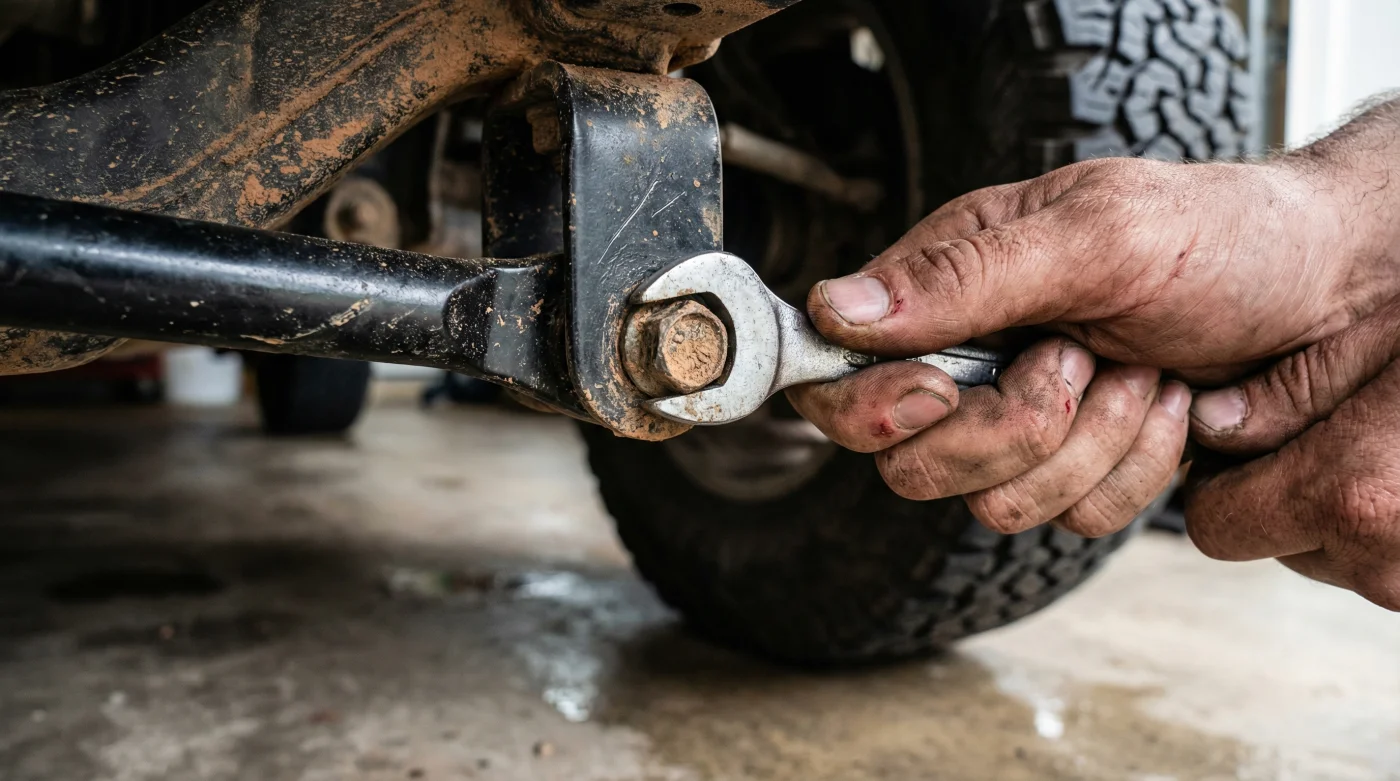 Para los que transitan de forma frecuente entre el asfalto y la finca, la inversión más inteligente no es una suspensión completa, sino instalar unos pasadores de desconexión rápida que cuestan apenas unos cientos de miles de pesos. Al retirar este pasador de forma manual, escucharás un sutil chasquido metálico proveniente del tren delantero. Es el sonido literal del chasis relajándose y reclamando su derecho a estirarse.