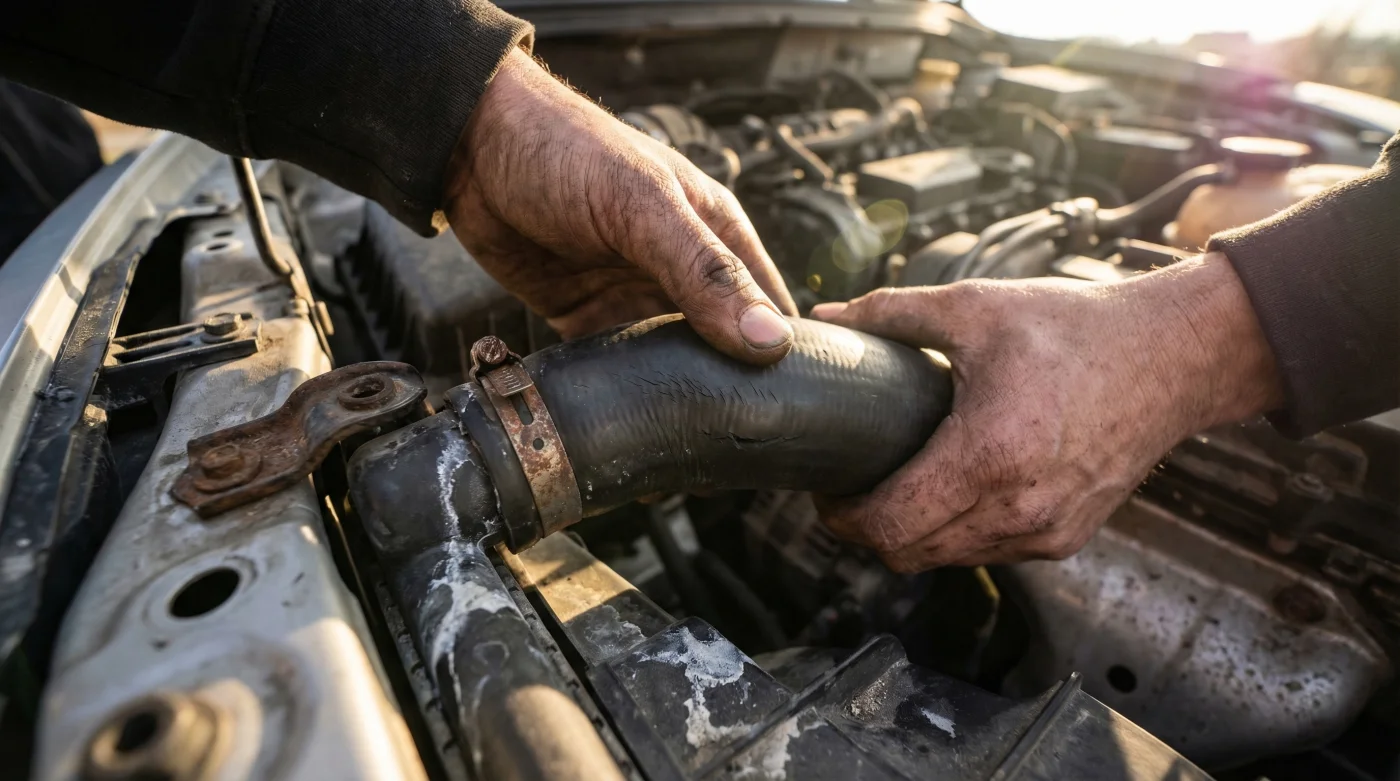 Si estás revisando un Chevrolet Sail usado, agáchate y toca la manguera inferior que conecta el radiador con el motor. Si notas que está permanentemente hinchada, abultada o se siente anormalmente esponjosa, es momento de abortar la compra. Esta deformación es la señal definitiva y delatora de que el vehículo sufrió un sobrecalentamiento grave en el pasado, lo que indica que el empaque de la culata estuvo quemado. La inmensa presión generada por esta falla expande las paredes internas de la manguera de forma irreversible.